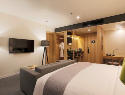 Enjoy the convenience of extra space of our Z-PLUS rooms featuring super-comfortable beds complimented by high quality toppers, a range of hypoallergenic soft and firm pillows and premium bed linen. Each room also comes with free WiFi, Bluetooth speaker system and a Smart TV with multiple cable channels. Choose a King or Twin Beds featuring a luxurious mattress and premium bed linen, along with walk-in showers and special amenities.